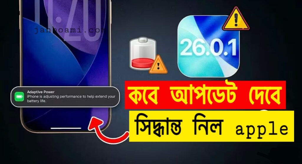 আমি আপনাকে প্রথমে ক্লিয়ার ভাবে বলে দিই, যে এখন পর্যন্ত apple কোন সিদ্ধান্ত নেয়নি,যে কবে আইফোন 26.0.1 আপডেট দেবে কিন্তু আপনাদের আইডিয়া এবং সোশ্যাল মিডিয়ায় অনেক আইডিয়া বা তাদের ওয়েবসাইট থেকে আন্দাজ পাওয়া গেছে যে অনেক মানুষ বিভ্রান্ত হচ্ছে বা অনেক অসুবিধা হচ্ছে।